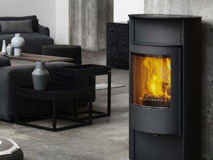 Amarant er en elegant og harmonisk vedovn. Ovnen har glass på tre sider, noe som gir deg maksimalt innsyn til de levende flammene. Amarant gir deg en moderne og eksklusiv atmosfære med de runde formene og sideglassene. Glasset på ovnen holder leie ettersom den er utstyrt med luftspyling av glassene. Døren er utstyrt med automatisk lukking med klapplås, som gjør at døren sitter godt inntil brennkammeret. Det lange håndtaket på døren lager et elegant design, og ikke minst slipper du å bøye deg ned for å legge i ved. I og med at håndtaket ligger på siden vil håndtaket holde seg kjølig under drift.