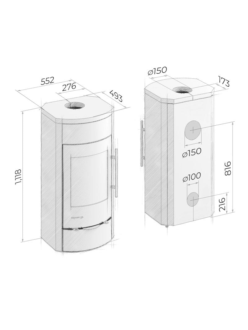 • Brennstoff: Ved og vedbriketter