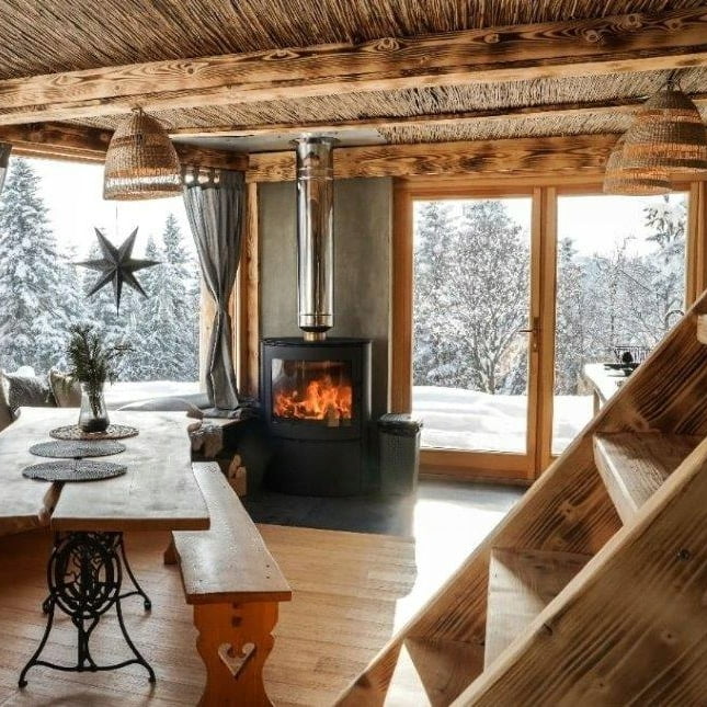 Det er ikke bare varmeeffekten som er bra med denne modellen. Den har et sylindrisk moderne design med et bredt glass, noe som gir deg et maksimalt innsyn til flammene.
