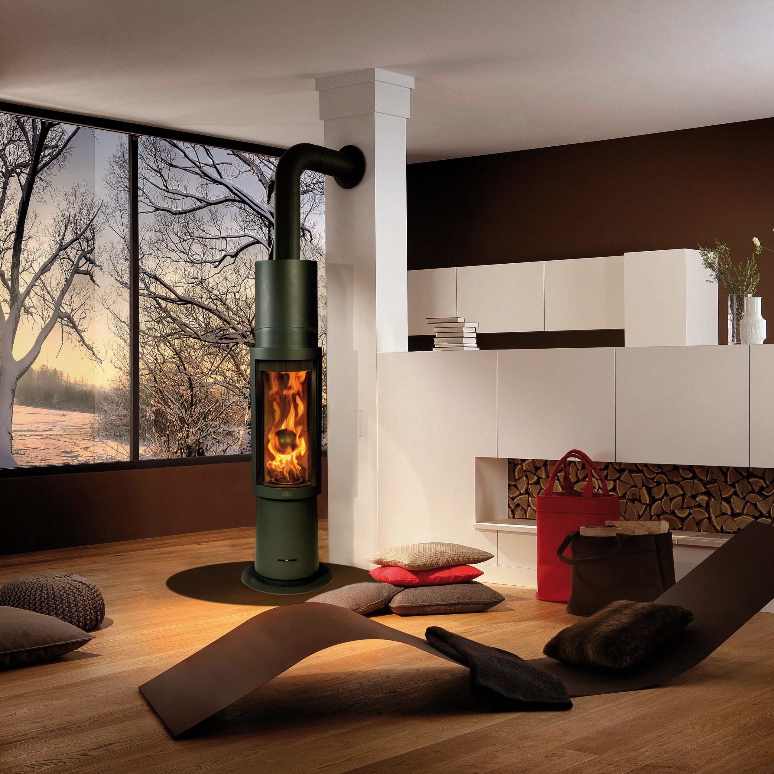Dijon L, (R) roterbar, ™tippmontering, antracit lakk.Dimensjoner på 178,5 (h) x 35 (b) x 35 (d) cm Dijon L har et effektområde på 6 – 8,5 kW ved vedforbrenning og 7,0 kW ved pelletsforbrenning. Med denne viser den 180 kg på vekten. Modellen Dijon L oppnår energieffektivitetsklassen A+.