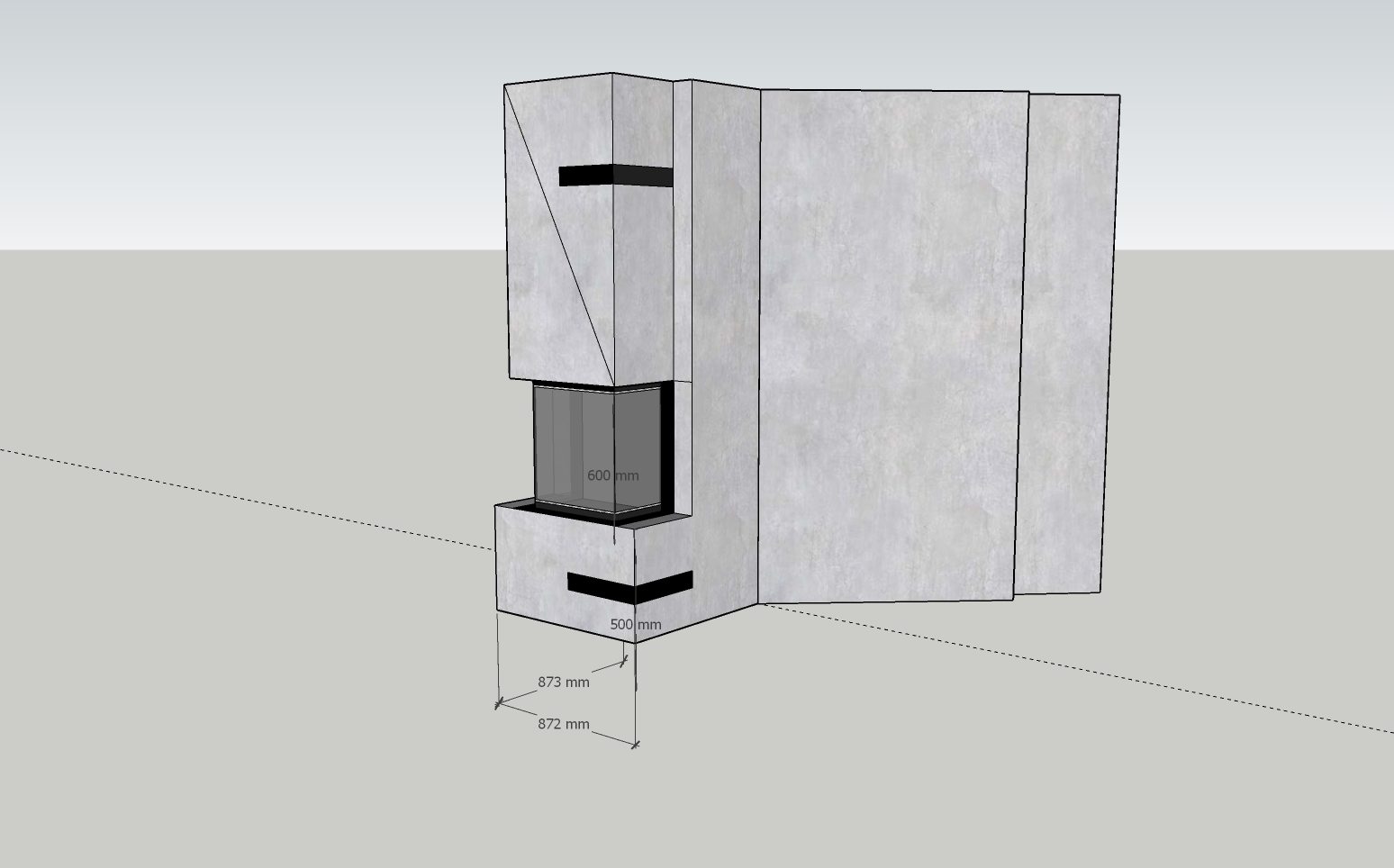 Heaven, 3 sidig peisinnsats, heve/senkedør, høyt glass, sort lakkert stein innvendig, rustfrie glassprofiler og avtagbart håndtak.