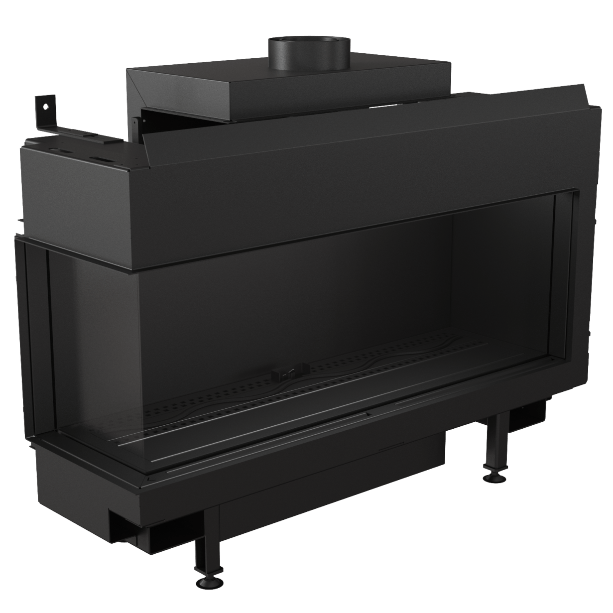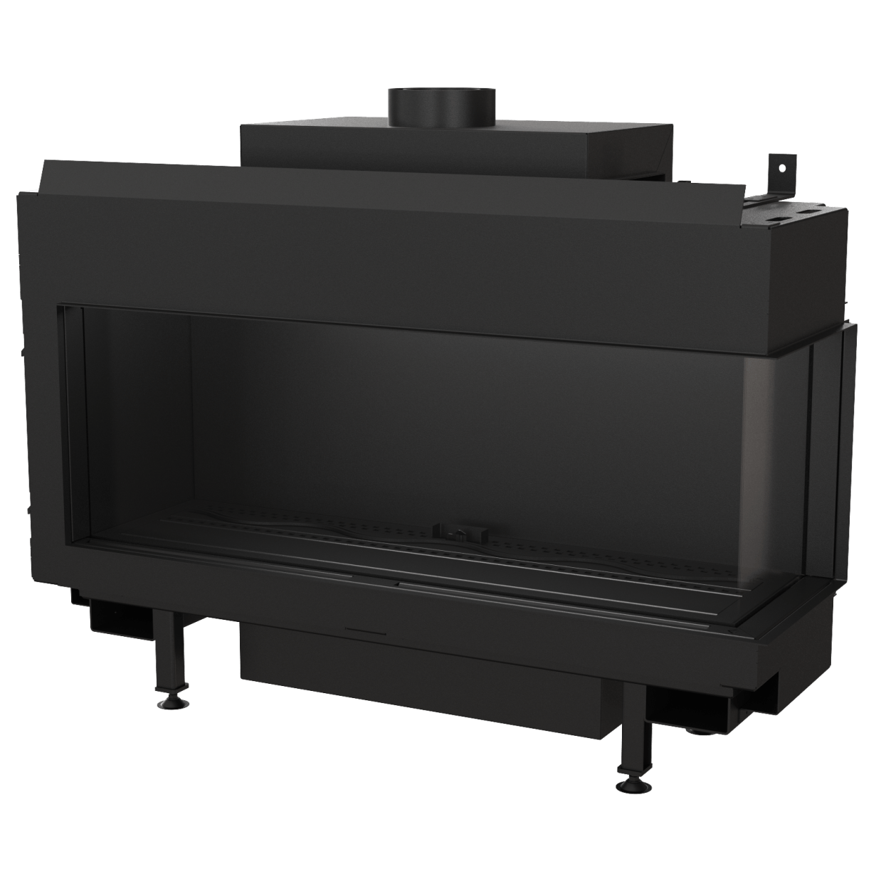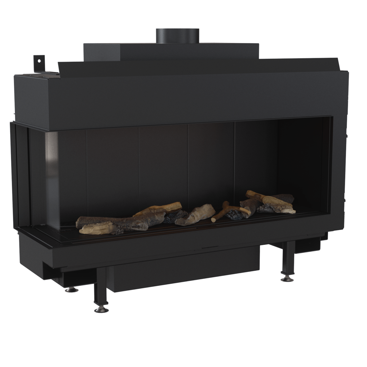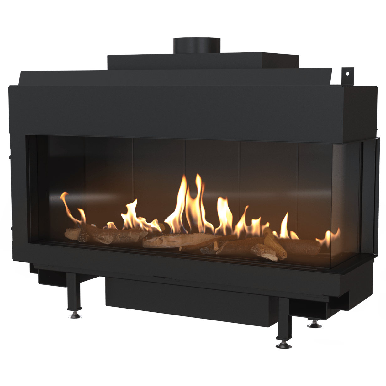 Denne flotte, minimalistiske hjørnemodellen gir fullt fokus på flammene. I tillegg til dette kan du velge en bakvegg i sort glass, som virkelig fremhever flammene. Fasaden har en subtil ramme, og eksterne elementer som er minimalistiske. Innsiden er kledd med lamell, og brenneren gir vakre flammer som du kan justere i høyde.