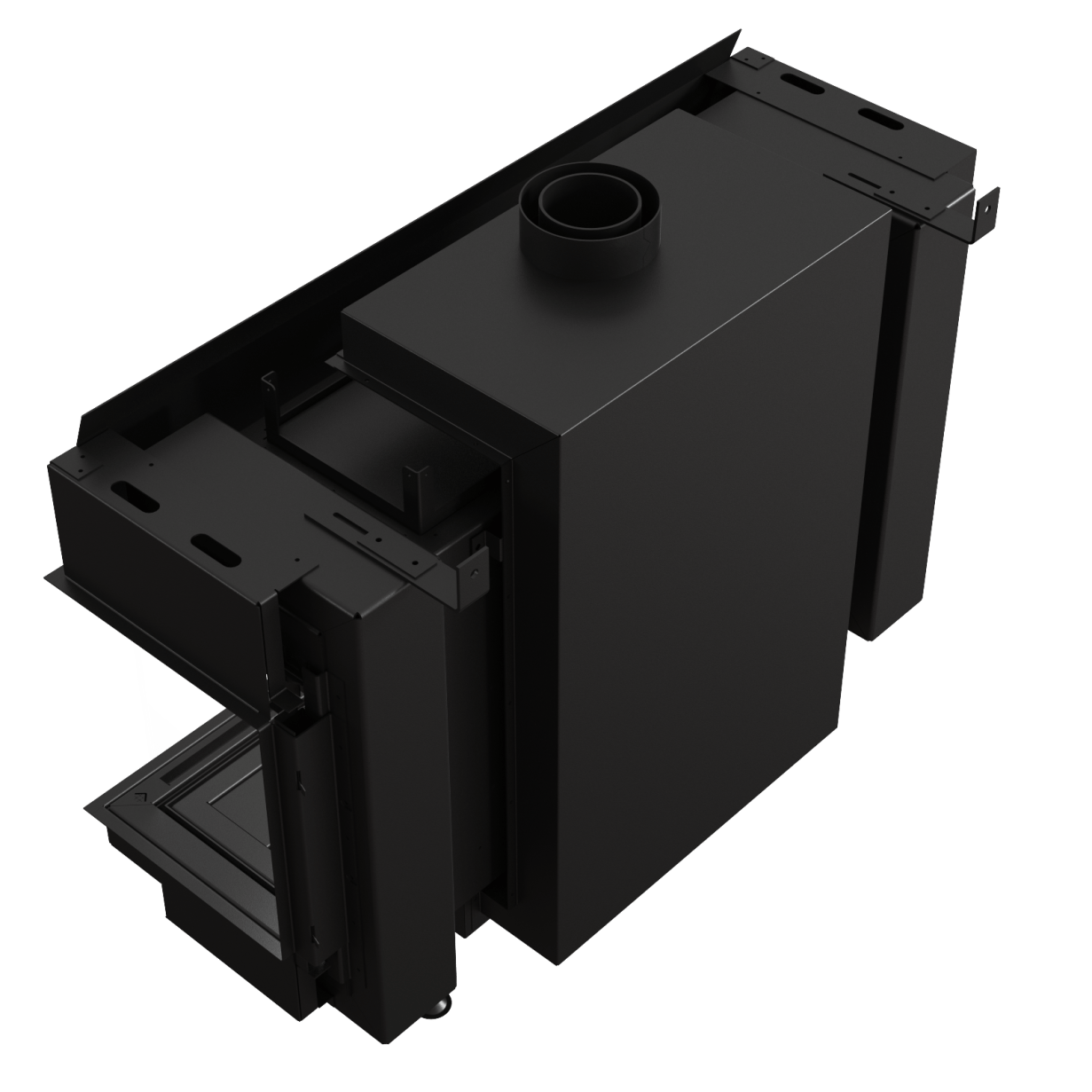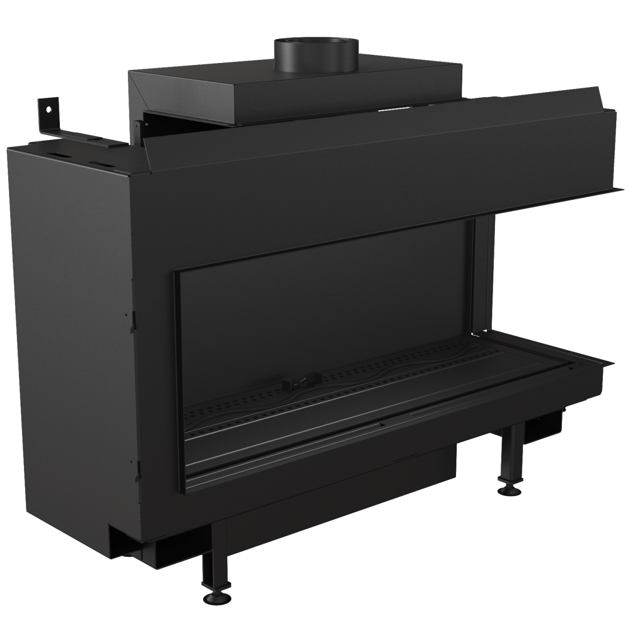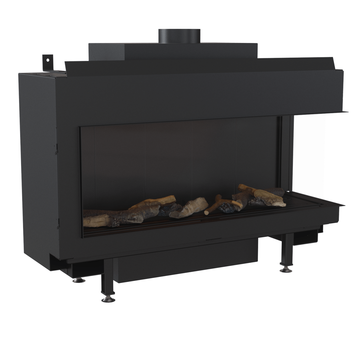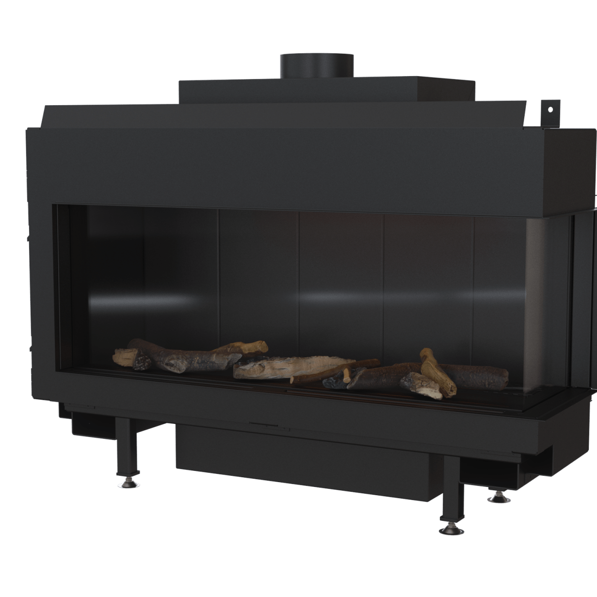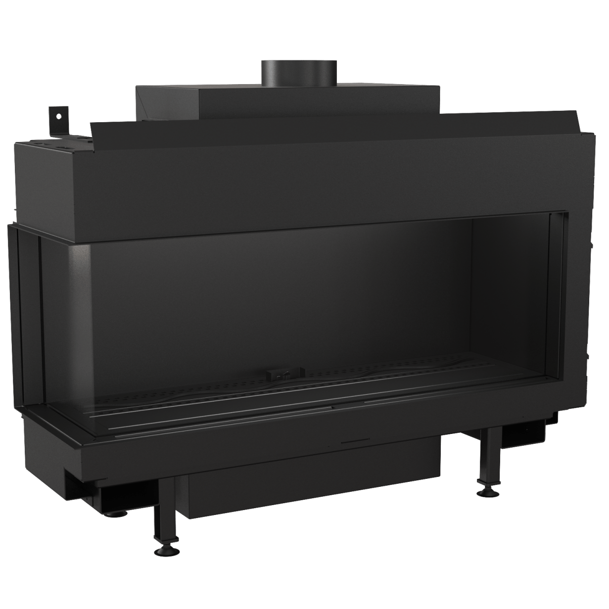 Denne flotte, minimalistiske hjørnemodellen gir fullt fokus på flammene. I tillegg til dette kan du velge en bakvegg i sort glass, som virkelig fremhever flammene. Fasaden har en subtil ramme, og eksterne elementer som er minimalistiske. Innsiden er kledd med lamell, og brenneren gir vakre flammer som du kan justere i høyde.