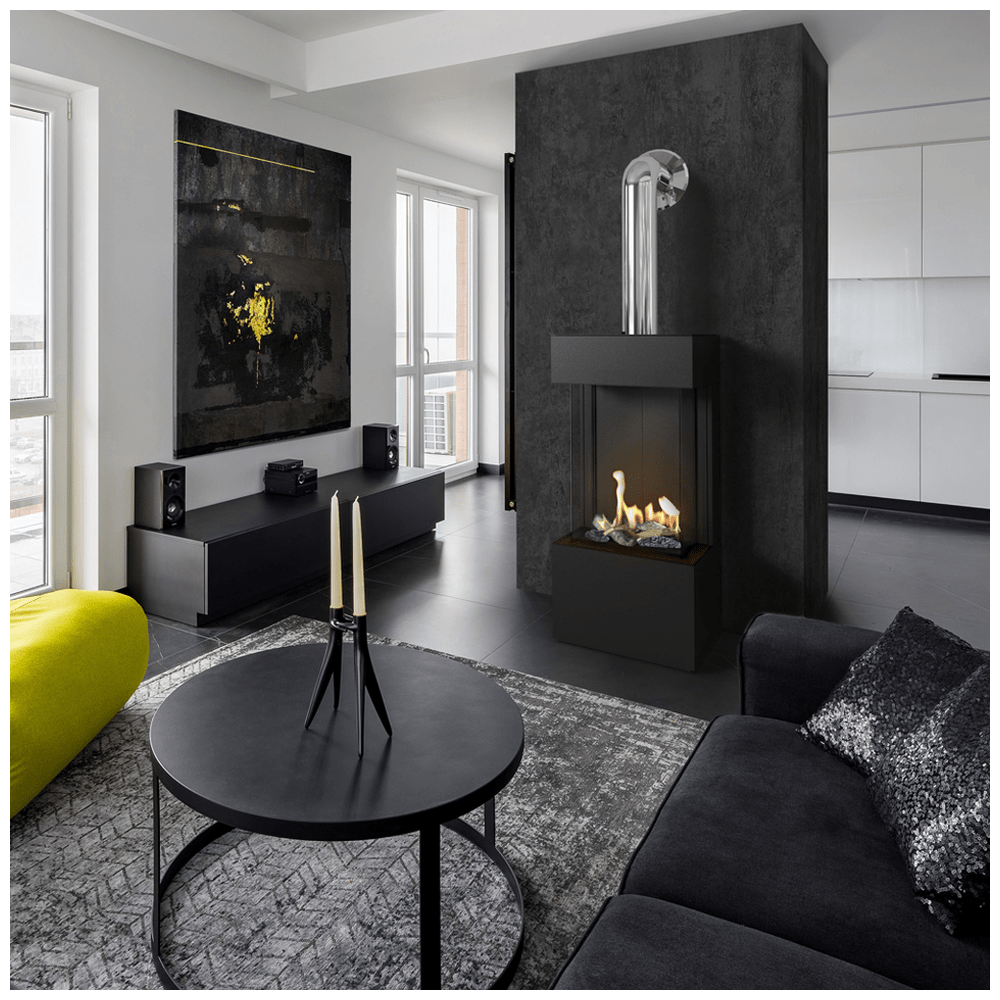 Denne flotte, minimalistiske panoramamodellen gir fullt fokus på flammene. I tillegg til dette kan du velge en bakvegg i sort glass, som virkelig fremhever flammene. Fasaden har en subtil ramme, og eksterne elementer som er minimalistiske. Innsiden er kledd med lamell, og brenneren gir vakre flammer som du kan justere i høyde.