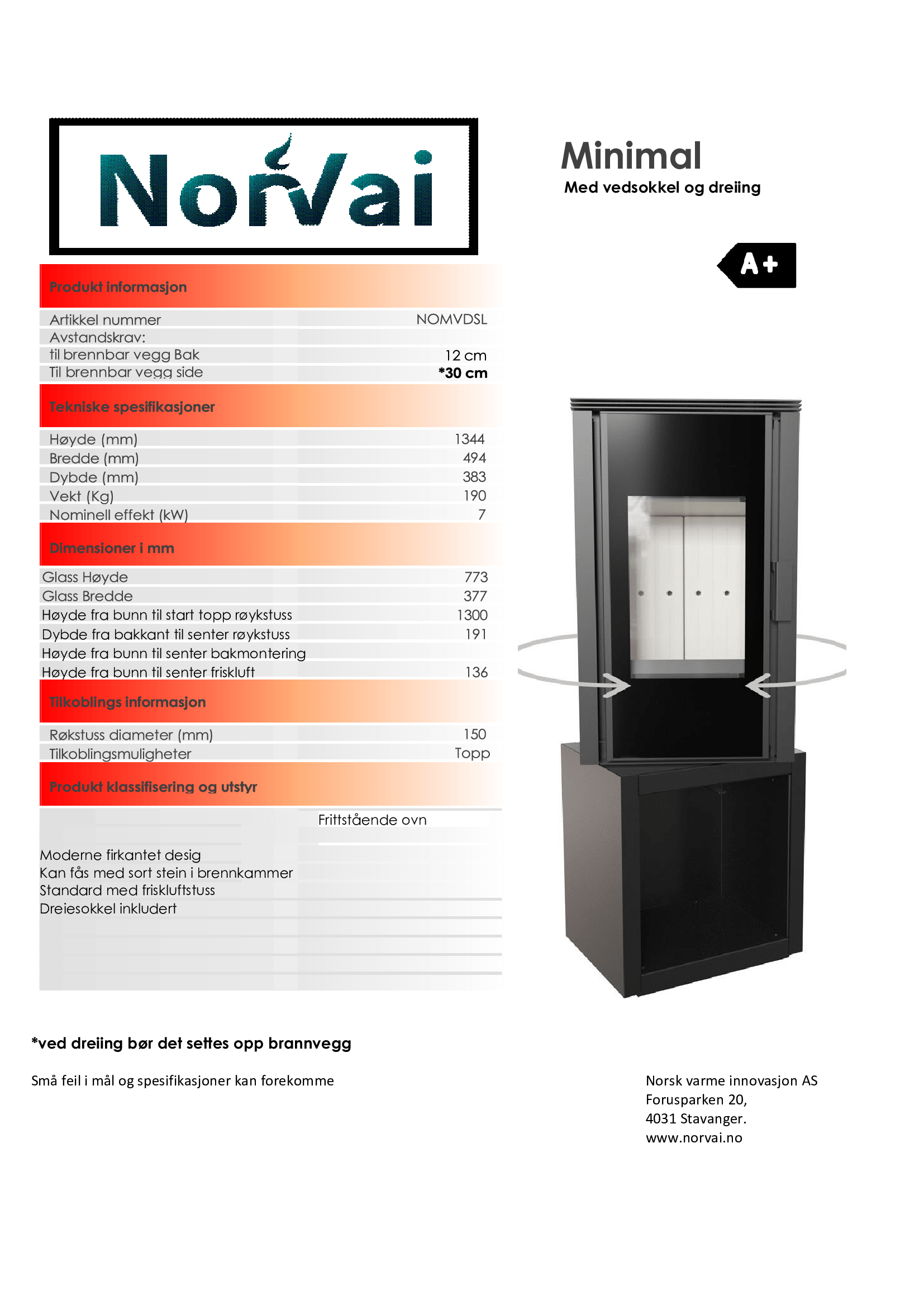 Norvai frittstående ovner er nøye utformet for å passe inn i en rekke forskjellige hjem. Denne ovnsserien deler samme brennkammer, men skiller seg ut ved å tilby varierte sokler og dørtyper. Enten du foretrekker en enkel og diskret stil eller ønsker at ovnen skal være i sentrum, da gir Norvai deg valget. Du kan velge mellom ståldører for et klassisk uttrykk eller komplett glassdør for et mer moderne preg på ovnen. Hvis du ønsker å bryte med den tradisjonelle svarte ovnen, kan du til og med velge en ovn med flisdekor i ulike farger.